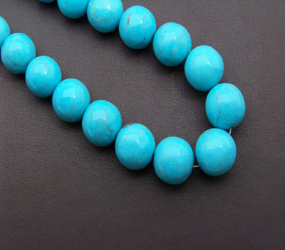 This Native American made necklace is simply stunning! This one qualifies as one of The Turquoise Mine's absolute favorites. Each one of these ever-so-slightly graduated turquoise beads is handcrafted by Juanita Atencio, of Santo Domingo Pueblo. The color of each of these 28! beads is a brilliant blue with a trace of matrix, and although round, imperfectly so, giving it the authenticity of being entirely handmade. This is Juanita's signature specialty, and owning one of her handcrafted pieces is, indeed, owning a true, heirloom-quality piece of jewelry.