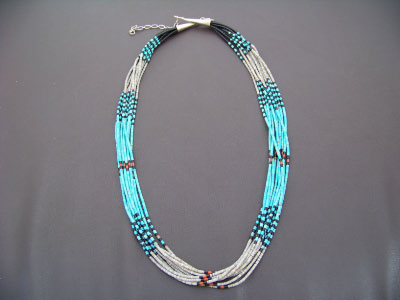 Native American Paul Tenorio 10-Strand Heishi Necklace