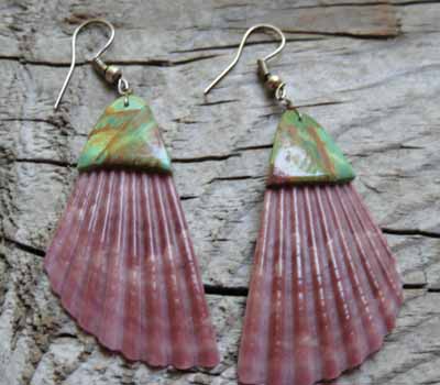 Native American Earrings Shell & Turquoise Top Inlay