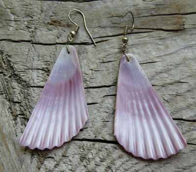 Earrings.Native American purple shell Earrings having nice defined grooves is used used as the palette for sea green turquoise inlay. Santo Domingo Indian made by artist Walter Garcia and Ella Mae. Large perfect for those who love purple.