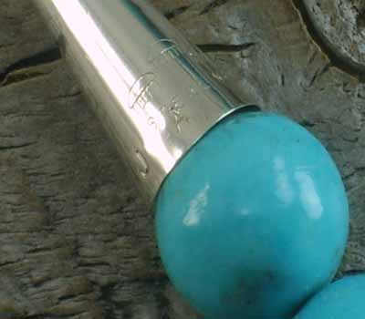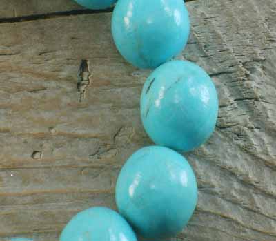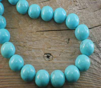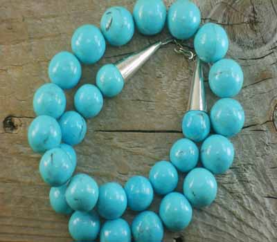 This Native American made necklace is simply stunning! This one qualifies as one of The Turquoise Mine's absolute favorites. Each one of these ever-so-slightly graduated turquoise beads is handcrafted by Juanita Atencio, of Santo Domingo Pueblo. The color of each of these 28! beads is a brilliant blue with a trace of matrix, and although round, imperfectly so, giving it the authenticity of being entirely handmade. This is Juanita's signature specialty, and owning one of her handcrafted pieces is, indeed, owning a true, heirloom-quality piece of jewelry.