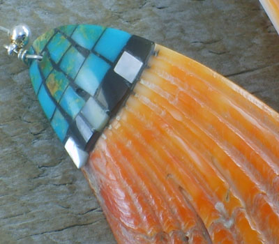 Native American Spiney Shell & Turquoise Top Inlay Lrg