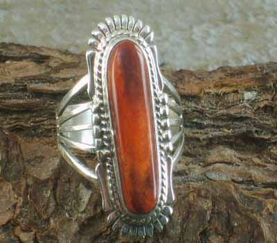 Orange Spiny Native American Ring - sz 9 1/4