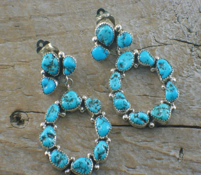 Turquoise jewelry, earrings, treasures and more... At TheTurquoiseMine.com we offer many one of a kind pieces. Please check our site for that special piece "that chooses you". We have a large selection of Native American Earrings, Indian earrings, American Indian turquoise earrings, and Turquoise earrings hand crafted by local artists. We offer Zuni inlay earrings, Navajo gemstone earrings, Santo Domingo slab earrings and Hopi sterling silver earrings. We hand select all of our earrings personally to ensure quality. Most of our earrings are one of a kind making them a special gift for yourself or a loved one to treasure for years to come. Please browse our selection of earrings, rings, necklaces, bracelets, all using sterling silver and natural minerals. The turquoise we offer comes from many of the great mines like Kingman, Morenci, Sleeping Beauty, Royston, Blue Lander, Carico Lake. Many earrings include semi-precious gemstones and natural minerals such as coral, jet, amethyst, amber, emerald, onyx, spiney oyster and shells. We hope you enjoy our turquoise earrings and treasures as much as we do.