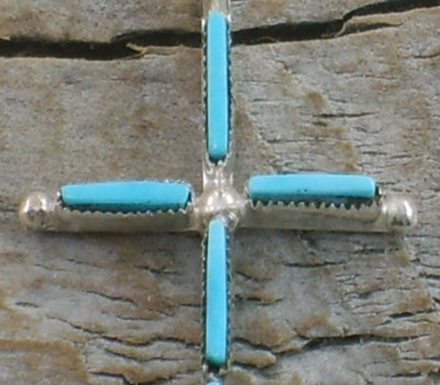 Native American Indian made silver turquoise needlepoint cross pendant. Petite and charming.