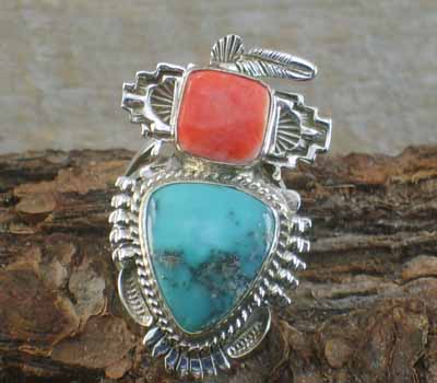 Ring Navajo artist, Bennie Ration mud head. A high-quality ring in both materials used and craftsmanship.A nice combination of turquoise and coral.