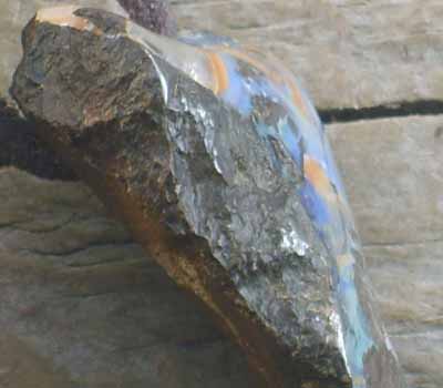 Boulder Opal Pendants are simply one-of-a-kind. This fine quality rough boulder opal pendant found in Australia was polished into a free-form cabochon shape. This pendant hangs on a leather cord with sterling silver wire. Other than being polished and drilled, this boulder opal gem is completely natural with no dyes, glues, or laminates. The boulder opal has a dark brown clay-ironstone natural matrix, and within the opal there are areas with green fire. The edges have not been ground, they are instead in their rough natural cut shape.This pendant is on a 30" adjustable 4mm leather cord.