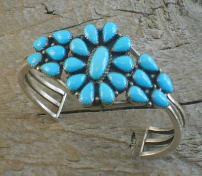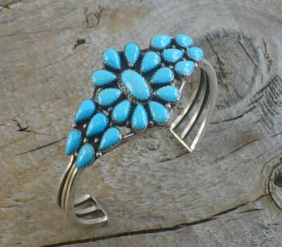Native American Cuff Bracelet Turquoise Cluster