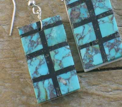 American Indian made by James Pete, these mosaic style earrings are beyond eye-catching. Look at them in your hand or wear them in your ears - its your choice...